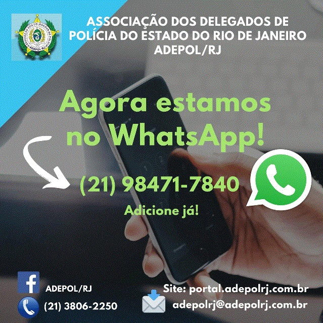 Em vista do Decreto do Estado do Rio de Janeiro, publicado na datade hoje, para as restrições como medida de segurança, contra a COVID-19, estaremosencerrando as atividades presenciais nesta sede e retornaremos no dia 05/04,segunda-feira. Atendimentos e solicitações emergenciais, poderão ser feitas atravésdo e-mail: adepolrj@adepolrj.com.bre WhatsApp: (21) 98471-7840.